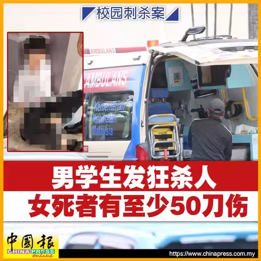 (八打靈再也14日訊)「男中學生刺死學姐」案;警方初步調查,嫌犯是因為暗戀女死者及學業壓力才幹案;此外,華裔女死者葉芯嫙的頸項及身上,被發現有至少50個刀造成的傷口!