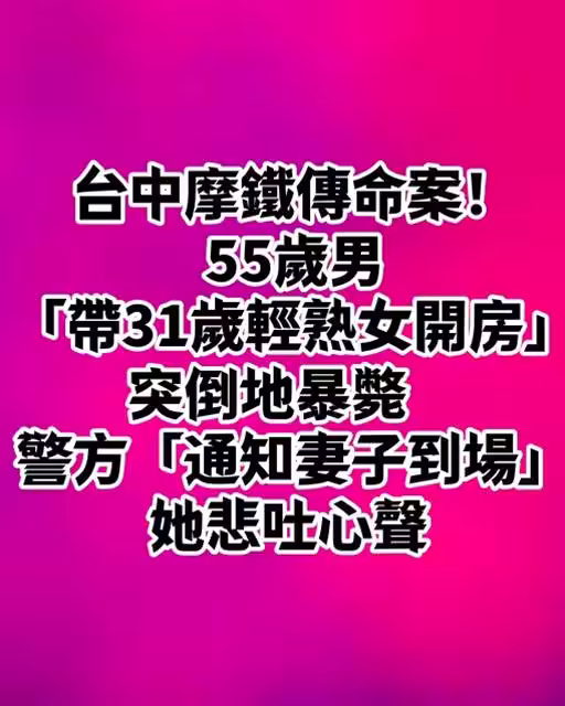 台中摩鐵傳命案!55歲男「帶31歲輕熟女開房」突倒地暴斃 警方「通知妻子到場」她悲吐心聲!