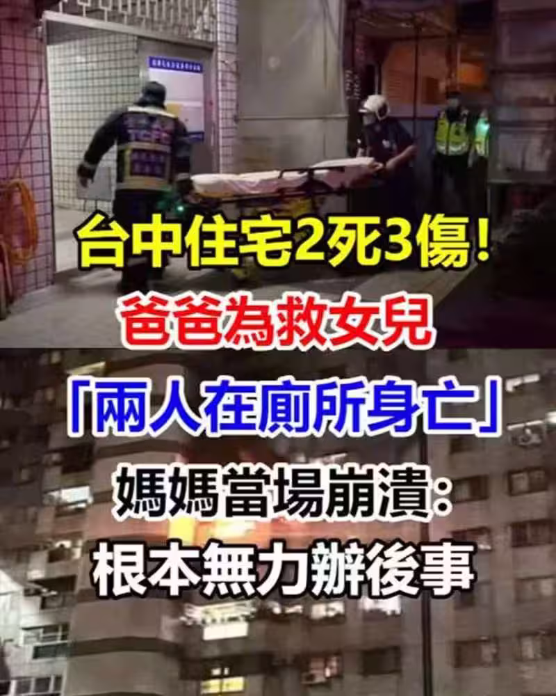 台中住宅2死3傷!爸爸為救女兒「兩人在廁所身亡」媽媽當場崩潰:「根本無力辦後事!」