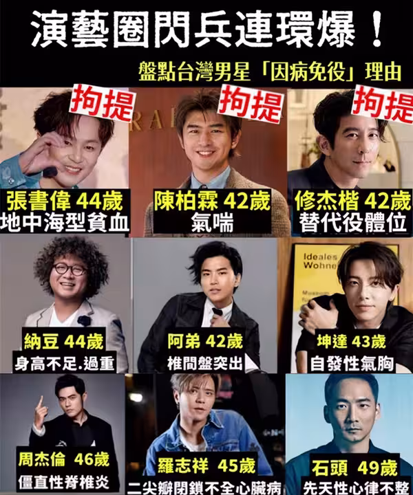 演藝圈閃兵連環爆!盤點台灣男星「因病免役」理由,傻眼:周杰倫也入列