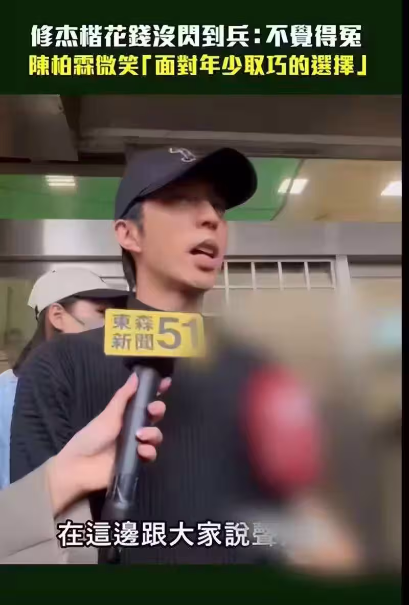 陳柏霖說,「對自己年少時做下的很荒謬取巧的事感到羞愧,也很尊重司法,後續會好好配合調查」。