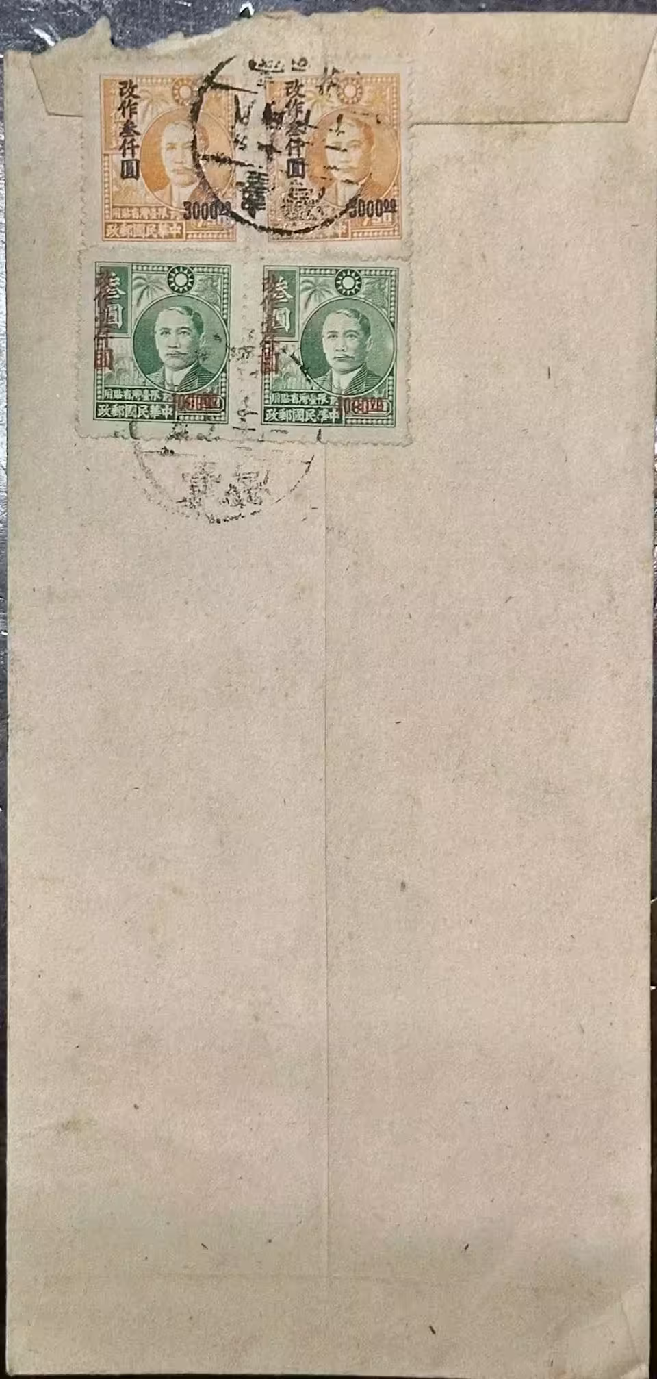 梁志忠說明,這信封是民國38年10月寄出,當時南投縣尚未建縣,是屬於台中縣下面的南投區,也因為當時物價指數崩盤、惡性通貨膨脹,買一顆雞蛋要5000元, 同年6月15日政府實施幣制改革,以舊台幣四萬元換新台幣一元。