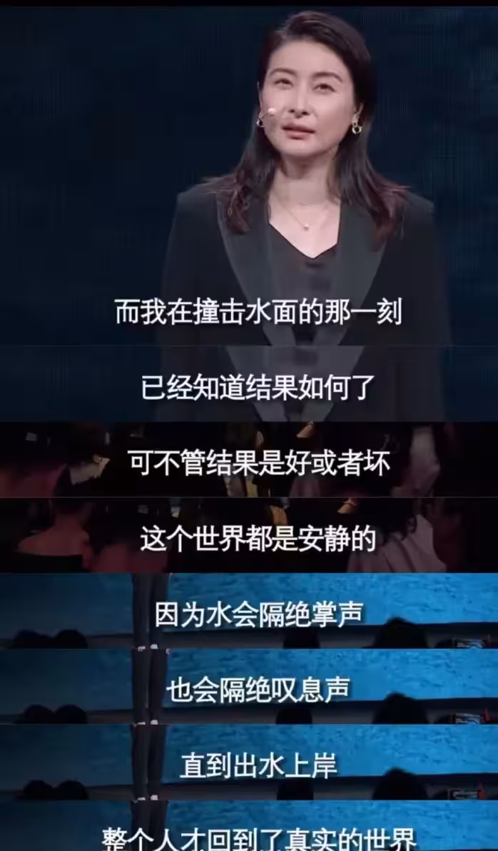 她說,「當真正跳水的時候,不管結果是好是壞,這個世界都是安靜的,因為水會隔絕掌聲,也會隔絕嘆息聲。」
