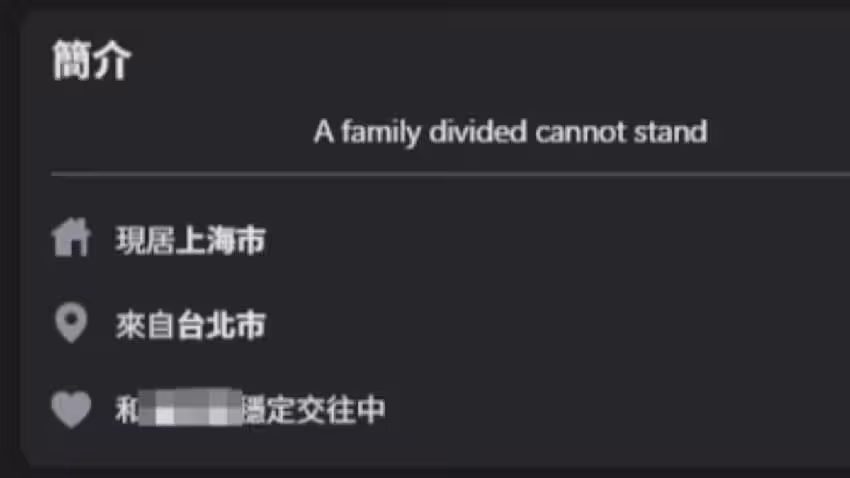 令人意外的是,陳男的社群網站上顯示,他正與另一名女子穩定交往中,臉書自介寫著「A family divided cannot stand」,而這位交往對象並非與他同居的曾姓死者。