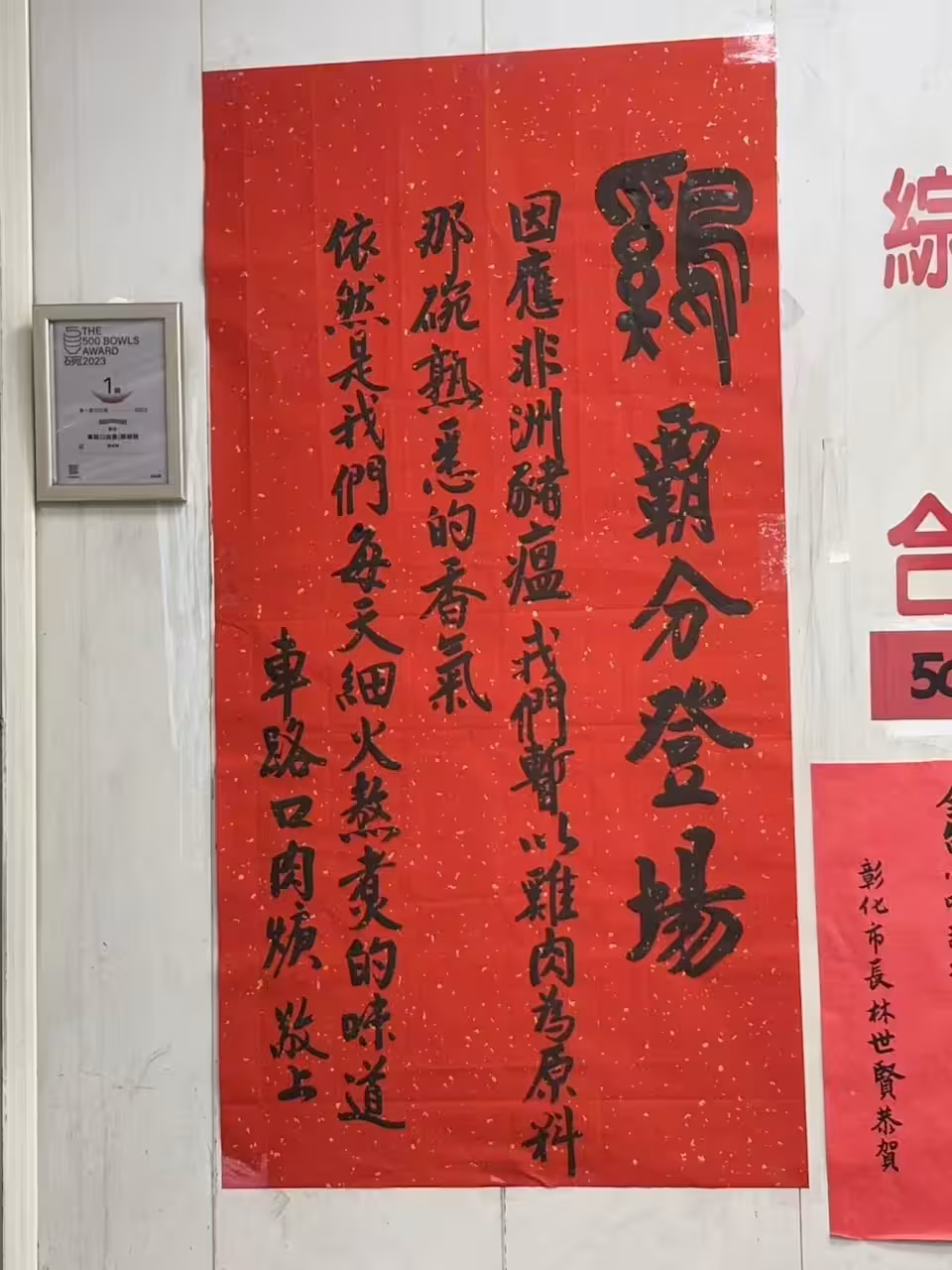 業者在店內貼公告改用雞柳條取代豬肉製作肉羹。許多顧客吃了之後,完全吃不出來原料已從豬肉改成雞肉,直呼「味道簡直一模一樣!」