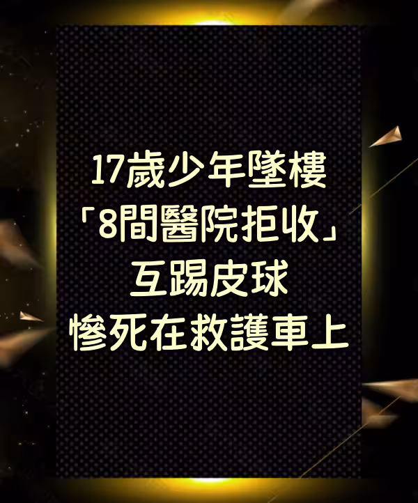17歲少年墜樓「8間醫院拒收」互踢皮球 慘死在救護車上