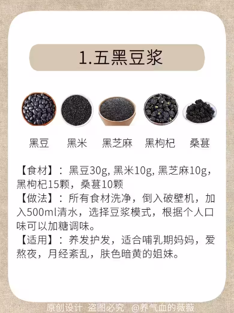 補充營養,增強體質:黑豆、花生和核桃都富含優質的植物蛋白,能為身體提供豐富的營養。黑豆還含有花青素和鐵元素;花生則提供不飽和脂肪酸和維生素E。