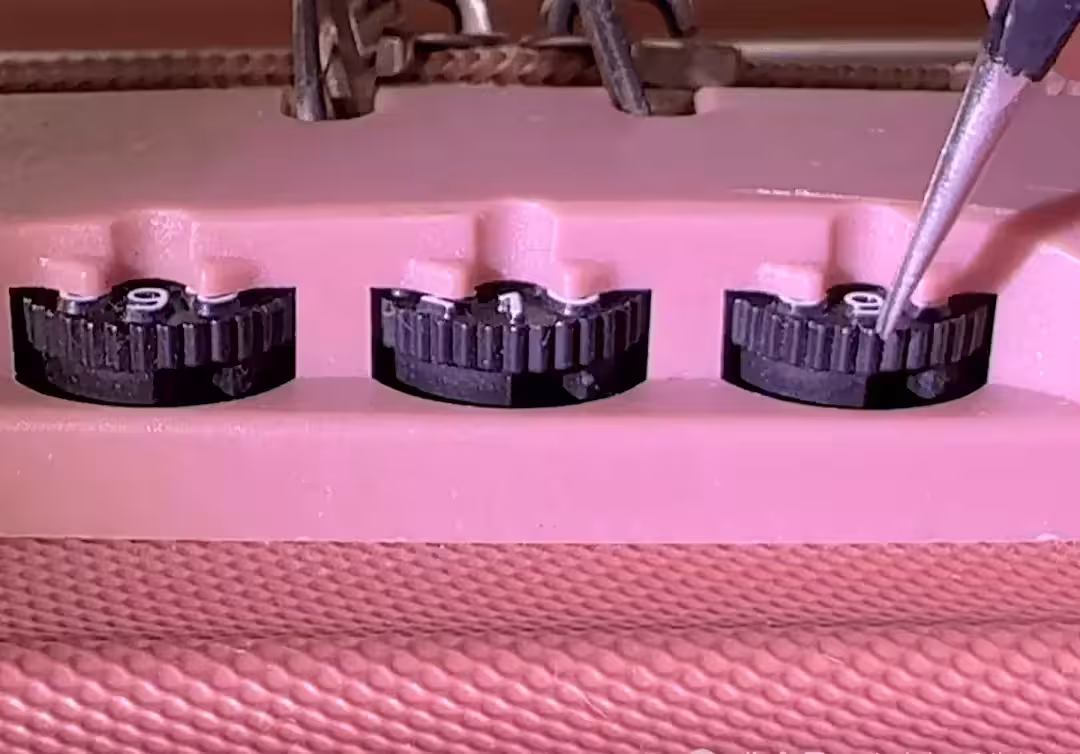 把這三個旋鈕的凹槽都調到正面,對準同一個方向,這時候看一下顯示的數字,比如現在顯示的是 919,這時候別急,大機率還打不開。