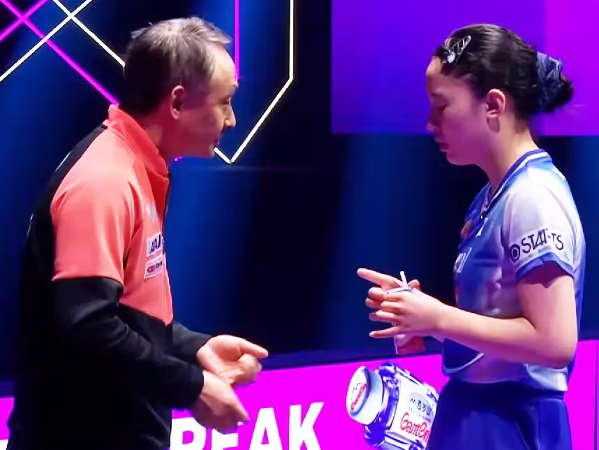 第二局張安開局領先沒把握住,緊接著被追至7-7平後出現崩盤,張本美和抓住機會再得3分以10-7反超對手,但很快錯失2個局點於是暫停下場與父親張本宇溝通。重返賽場後,日本小將做出改變以逆旋轉發球逼張安出現回球質量不高的情況,隨後強勢搶攻以11-9再下一城。