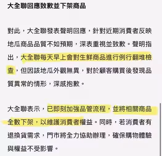 實在有夠氣!高嘉瑜買到爛地瓜連發兩文尋找大全聯客服