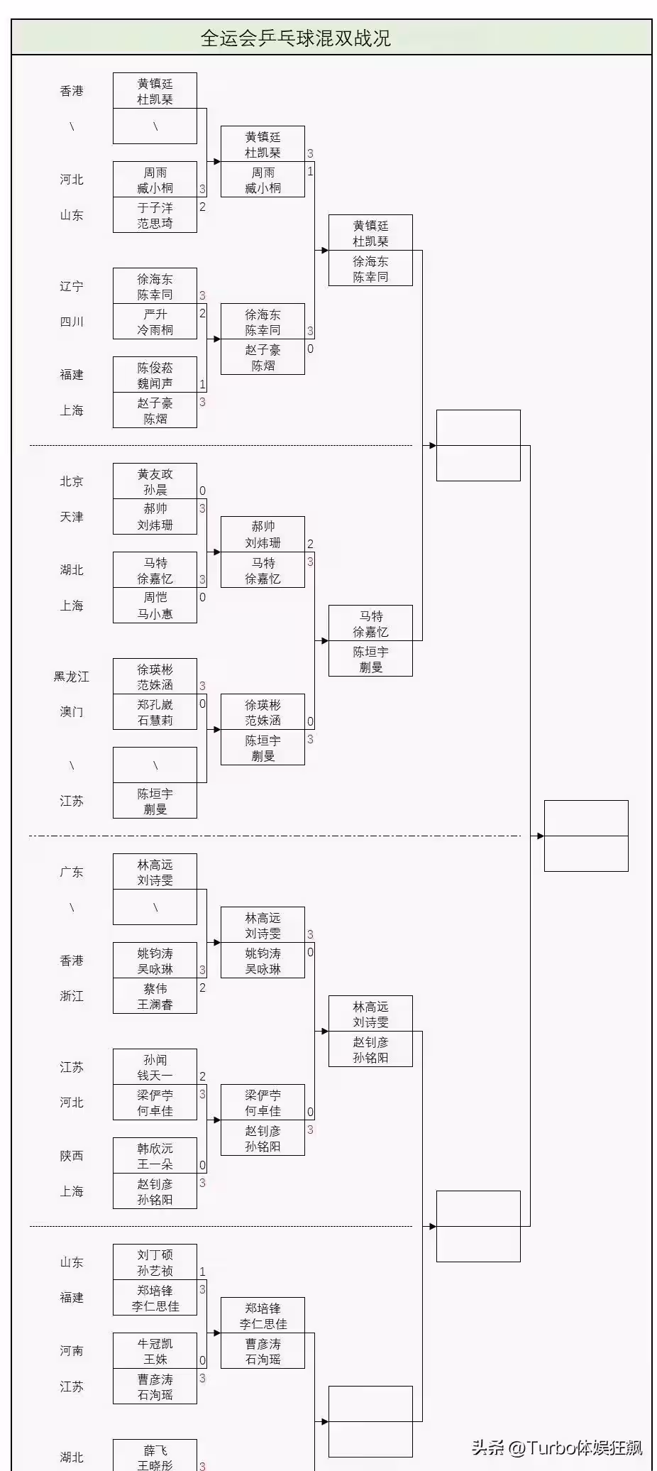 全運會桌球混雙八強已定六席!林高遠劉詩雯3:0橫掃強勢晉級