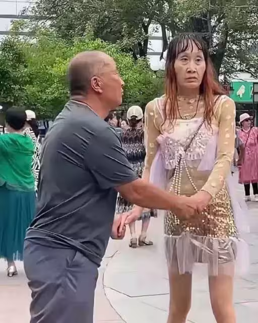 大爺和「靚女」廣場跳舞引注目!飄逸秀髪逆天長腿卻「毀在一個回眸」,網驚:背多分,秒變正面「兇手」!