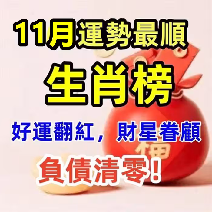 11月運勢最順生肖榜,好運翻紅,財星眷顧,負債清零!
