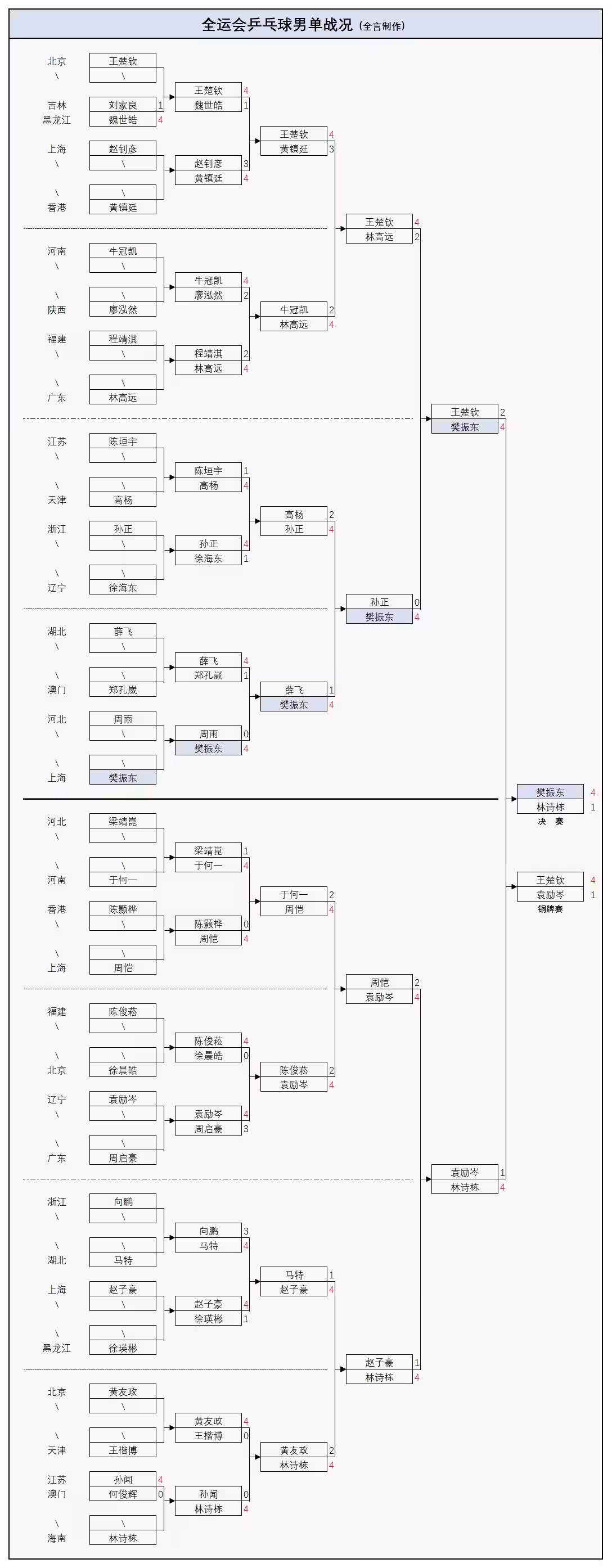 全運會男團4強出爐:世界冠軍2:3出局,樊振東苦戰,王楚欽剃光頭....