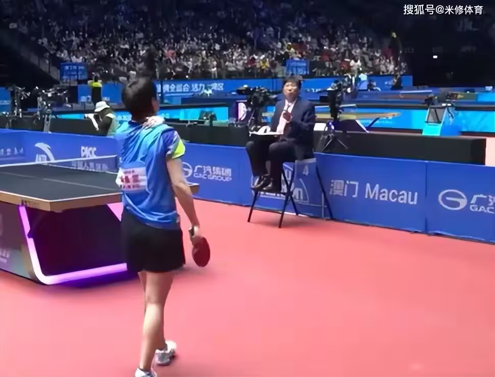 與錢天一的比賽時,王曼昱拼盡全力,但疑似扭到了肩頸的部位,她時不時會撫摸患處。