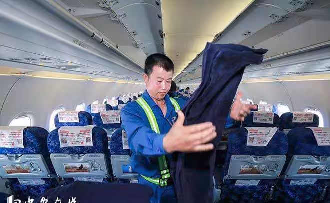 而那些肉眼可見沒問題的毛毯,就會被清潔人員摺疊整齊,等待第二批、第三批乘客的使用了。