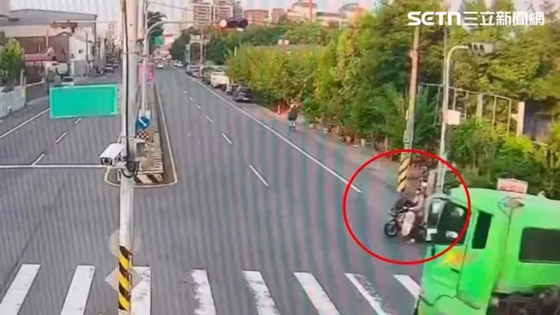 南投草屯驚悚車禍,阿嬤騎車載資源回收物過馬路,慘遭闖紅燈砂石車撞擊。