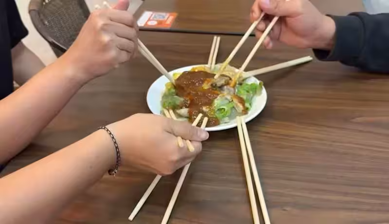 7人占兩桌只點一份70元蚵仔煎,讓店家無法拼翻桌率。