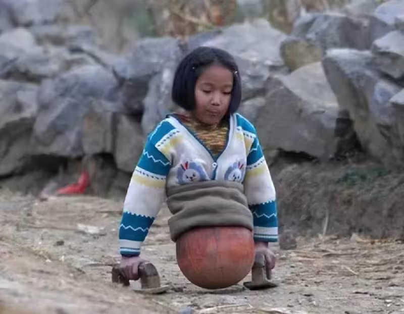 那時的錢紅艷才 4 歲多,和往常一樣,她與小朋友們在外面玩耍著,玩得正開心的時候,她的鞋子不小心掉了,孩子們趕忙跑回去撿鞋子。