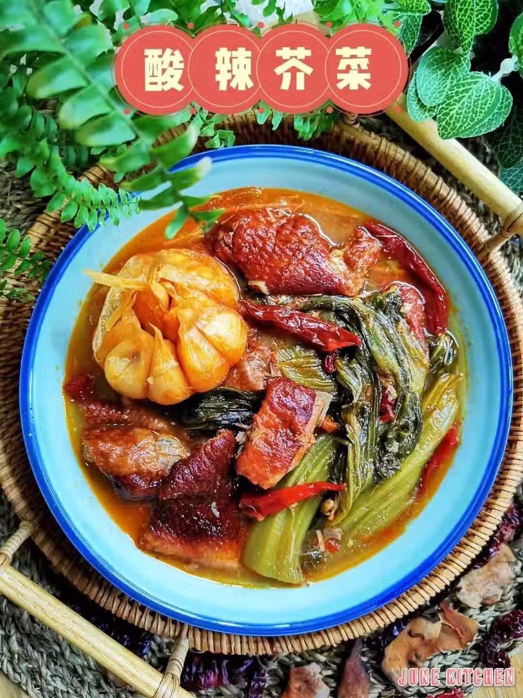我的外婆是客家人,記得小時候逢年過節吃剩的菜都會把它煮成酸辣芥菜,客家人稱它為"菜腳"。