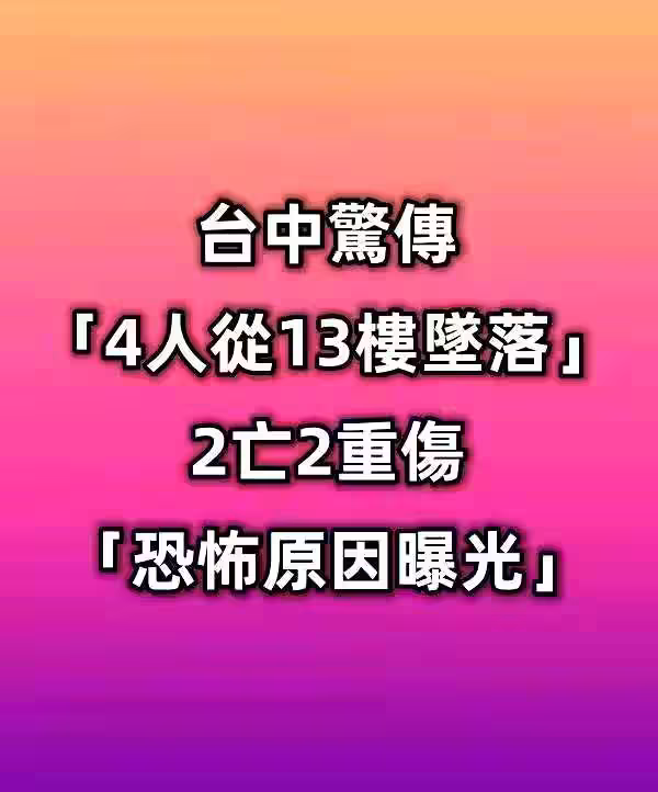 突發/台中驚傳「4人從13樓墜落」!2亡2重傷「恐怖原因曝光!」