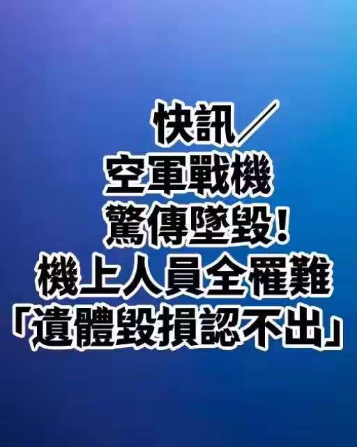 快訊/空軍戰機驚傳墜毀 !機上人員全罹難 「遺體毀損認不出」