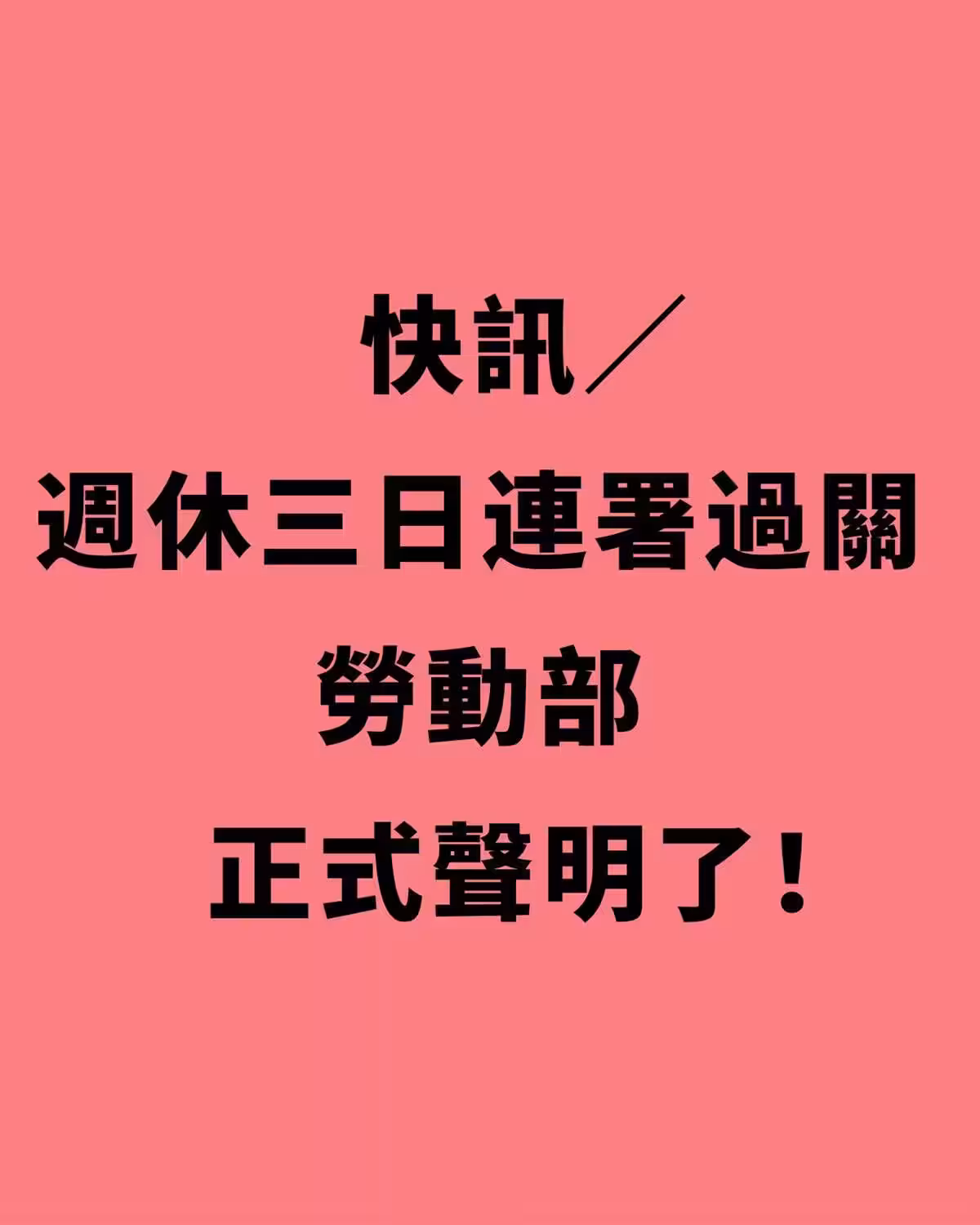 快訊/周休三日連署過關, 勞動部正式聲明了