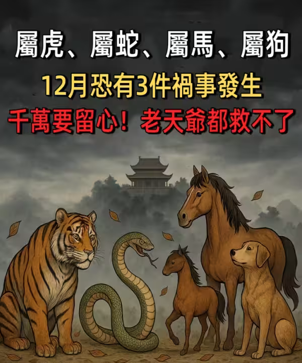 「 屬虎、屬蛇、屬馬、屬狗」12月恐有3件禍事發生,千萬要留心!