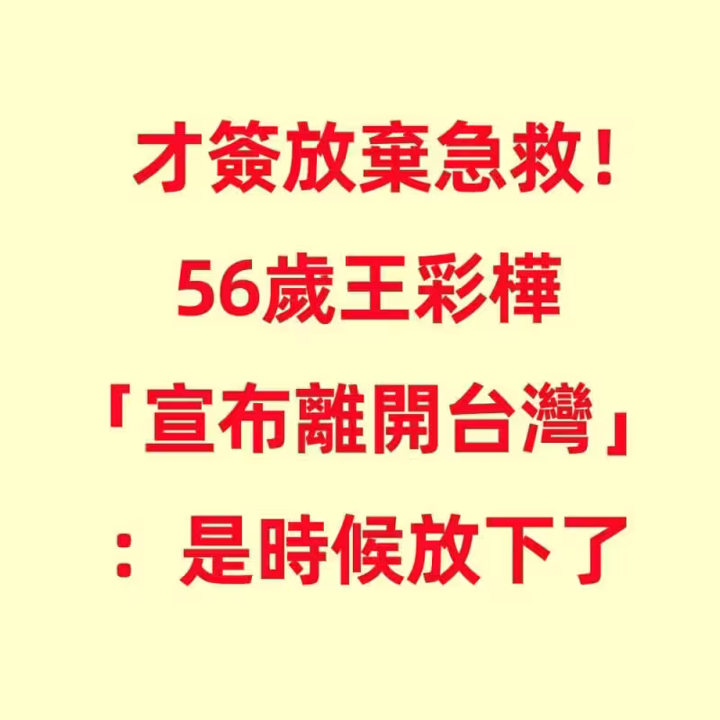 才簽放棄急救!56歲王彩樺「宣布離開台灣」:是時候放下了。