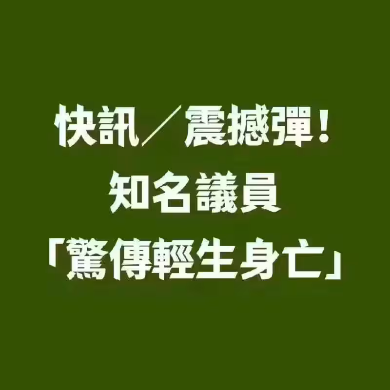 快訊/震撼彈!知名議員「驚傳輕生身亡」
