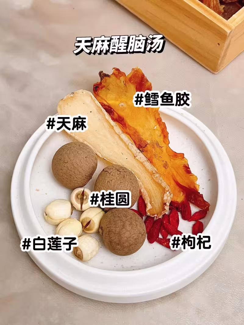 ✅ 食材:天麻、鱈魚膠、桂圓、白蓮子、枸杞