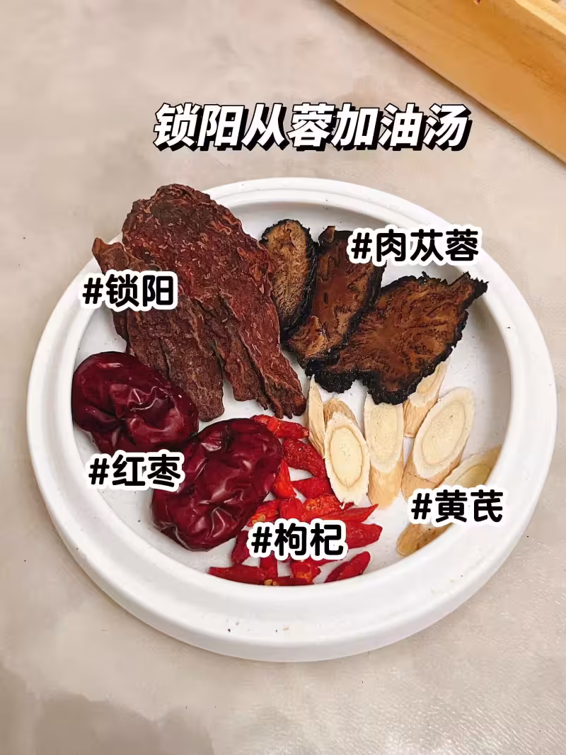 ✅ 食材:鎖陽、肉蓯蓉、紅棗、枸杞、黃芪