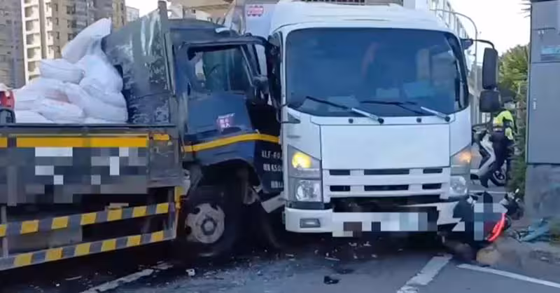 貨車搶快左轉遭直行貨車追撞 2駕駛1騎士送醫