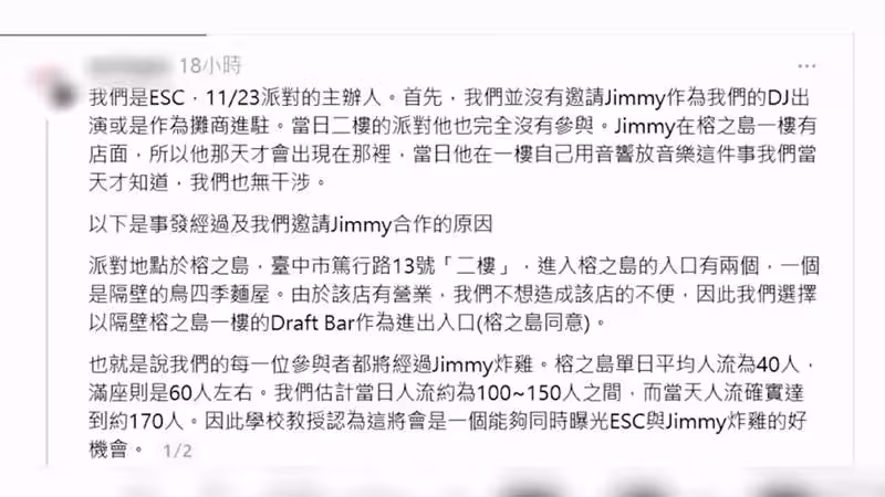 對此,學生主辦方在自己的專頁回應,表示該店面平均人流約40人,而活動當天有170人,他們想透過合作與老闆八二分成,並強調交談過程都保持禮貌和開放態度,反而是老闆態度不佳,甚至禁止活動參與者購買炸雞。