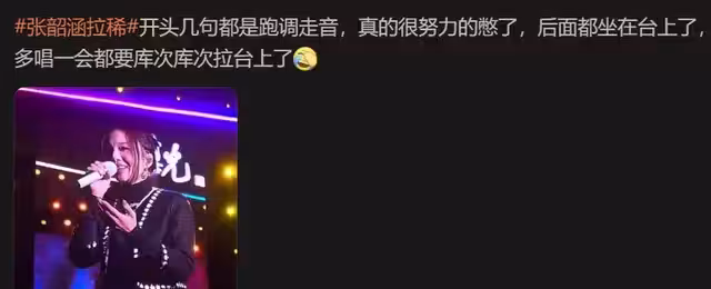 還有網友拍到了她離場的視頻,雖然不能確定有沒有真的拉稀,但能看出當時張韶涵的臉色很差,整個人病懨懨的,有一種虛脫走不動路的感覺。