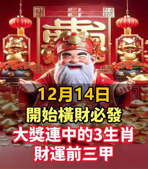 12月14日開始橫財必發,大獎連中的3生肖,財運前三甲