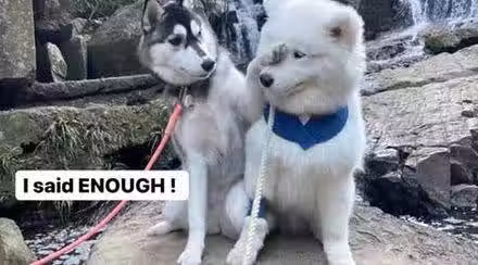 哈士奇被薩摩耶強吻,可沒想到狗子竟是這種反應,笑噴!_官面_高冷