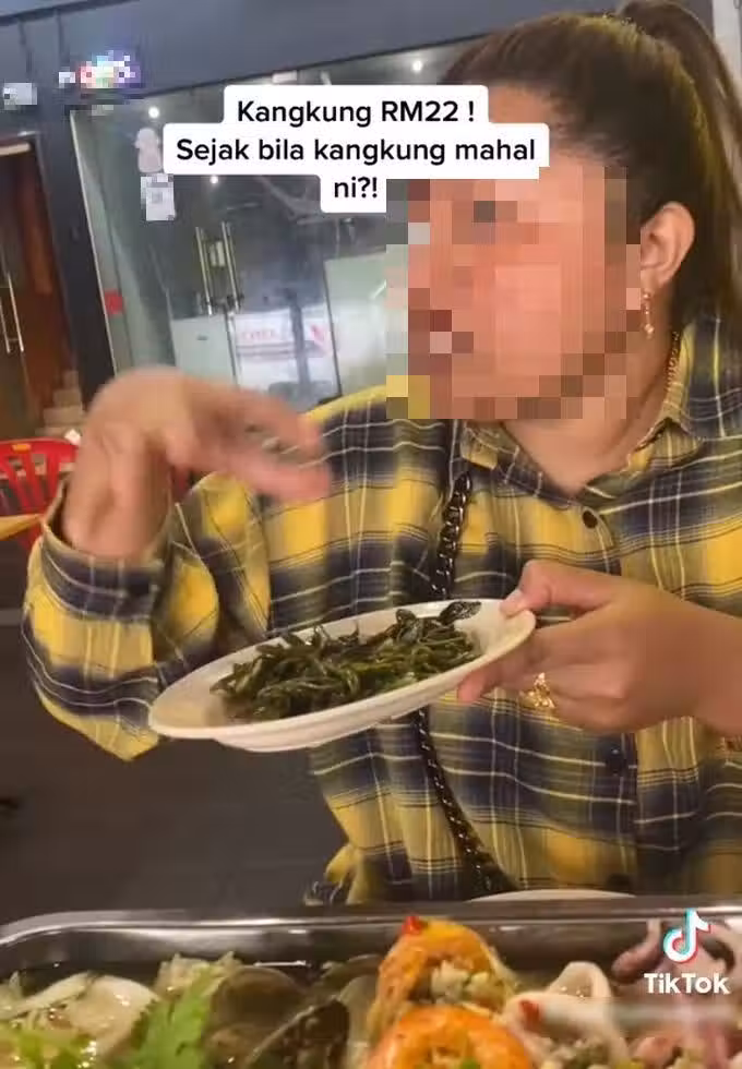 一名女顧客因為在社交媒體看到網紅推薦後和友人一同到這家海鮮餐廳用餐,但是卻發現一碟份量少的空心菜要價22令吉,讓她大感錯愕。