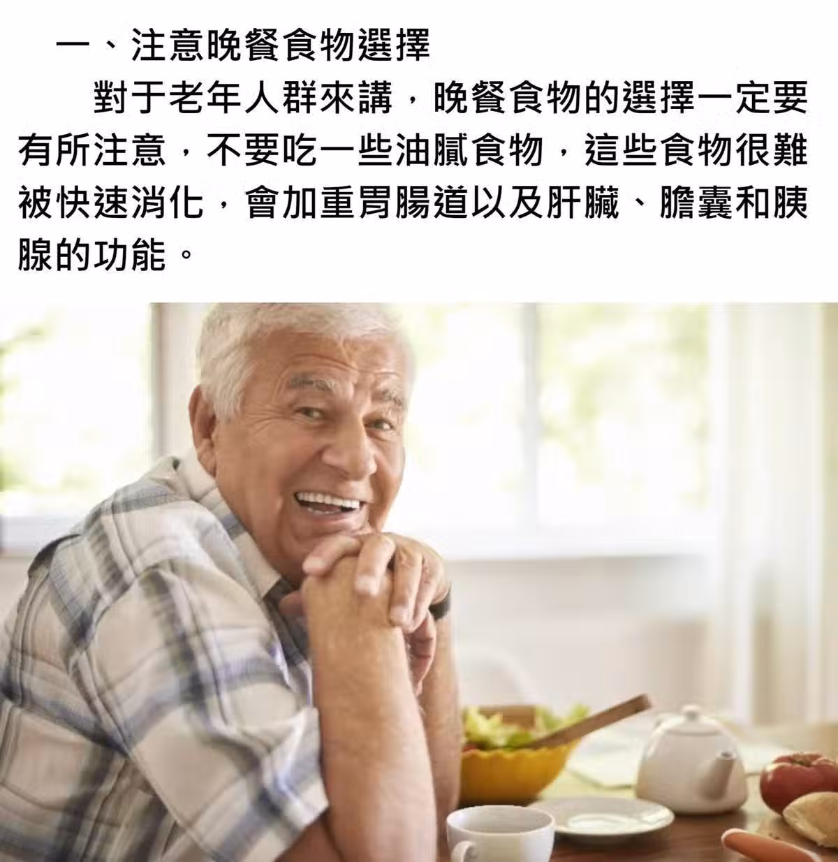 吃晚餐有「講究」,尤其是老人,要想健康長壽,晚餐需牢記這5點