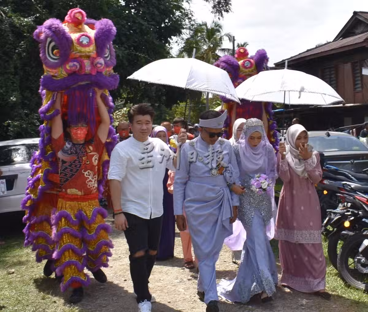 馬來新人婚禮邀舞獅點鞭炮 邀華裔同學當伴郎