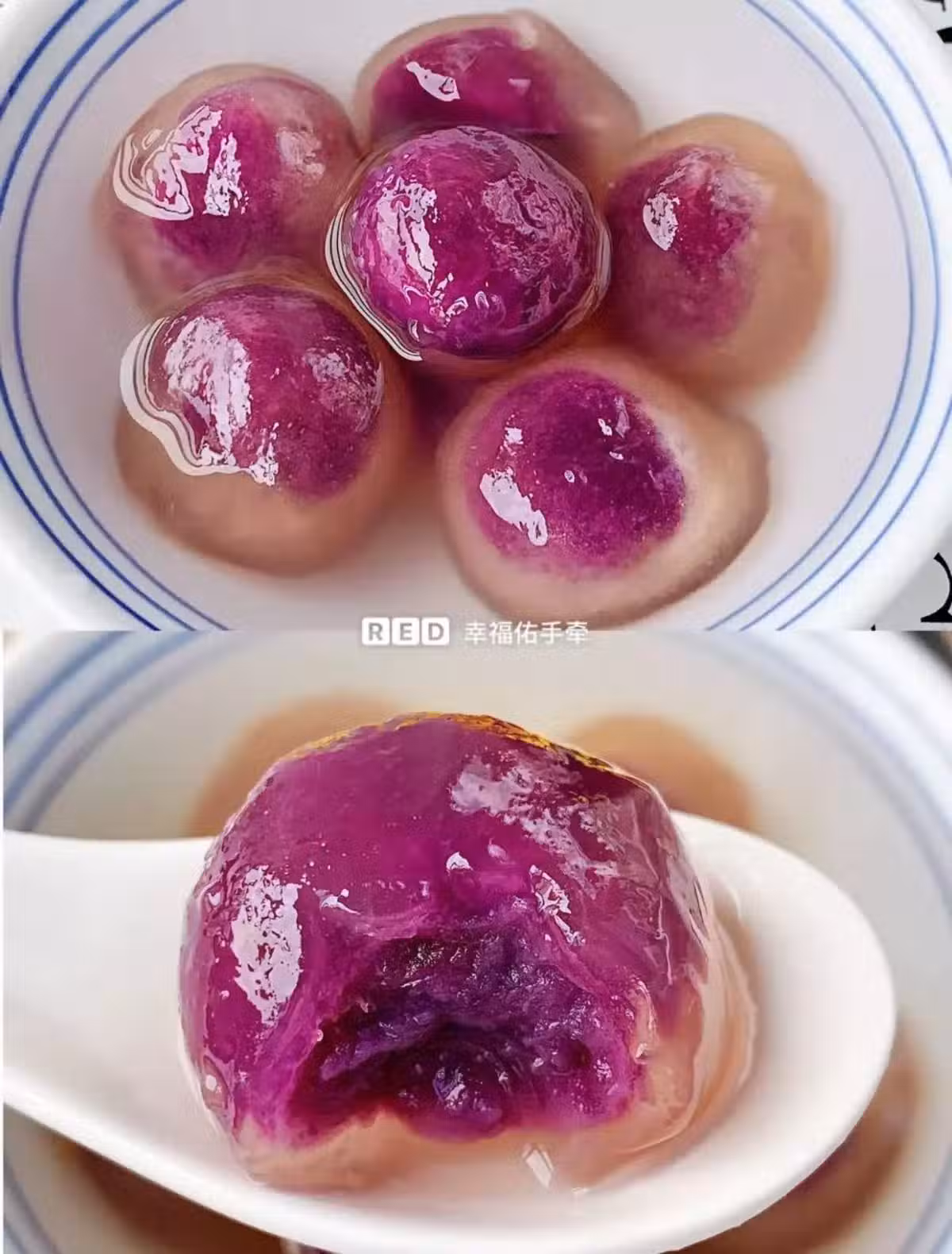 (四)鍋中水燒開,放入紫薯水晶湯圓煮至浮起來,蓋上鍋蓋燜2分鐘即可