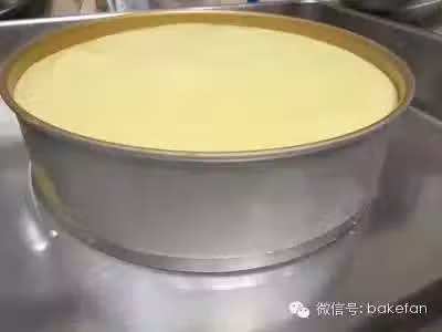 準備一個有些深度的烤盤,裡面倒入開水+一部分冷水=大概溫度在70-80度。將蛋糕模放入,在水中的深度約1-1.5cm左右即可。放入預熱170度的烤箱內。中下層,155-160度烤約45-50分鐘。出爐,放在耐熱表面或者冷卻網上自然冷卻。