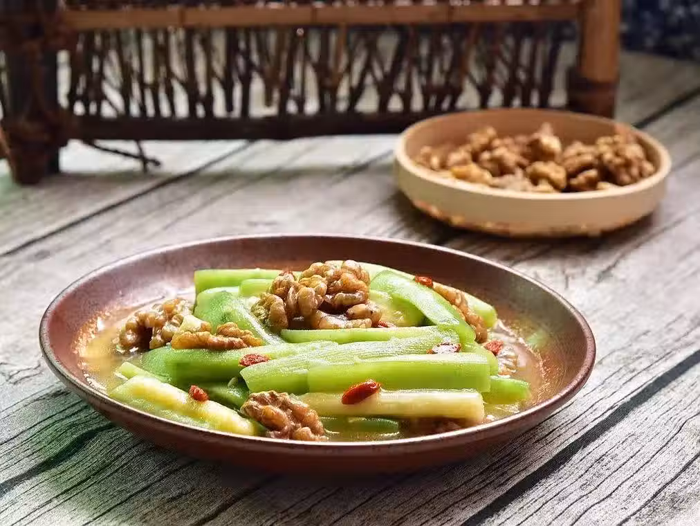 4. 炒鍋放入花生油,放核桃仁翻炒;