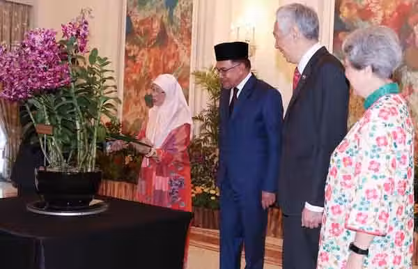 (吉隆坡30日訊)首相拿督斯里安華和夫人拿督斯里旺阿茲莎,今午在新加坡總統府出席胡姬花命名儀式,名為「安華阿茲莎石斛蘭」(Dendrobium Anwar Azizah)。