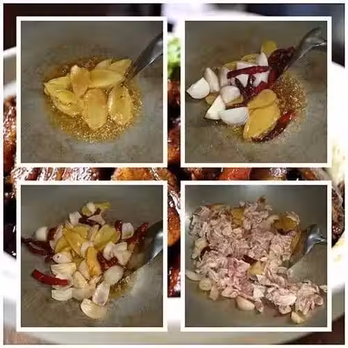 5花肉上色後,加水,末過花肉即可。大火煮滾,把鹹魚放入。輕輕翻一下。加入黑醬油調色。繼續大火煮到汁收濃即可。預熱砂鍋,把煮好的花腩放入砂鍋內即可上桌。