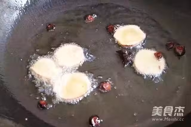 4.下入蔥頭,排骨,加一點鹽調味,翻炒至變色。