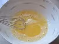 香蕉里加入5-6滴檸檬汁,用小勺或者手動打蛋器壓碎成香蕉泥後,加入蛋黃,拌勻。