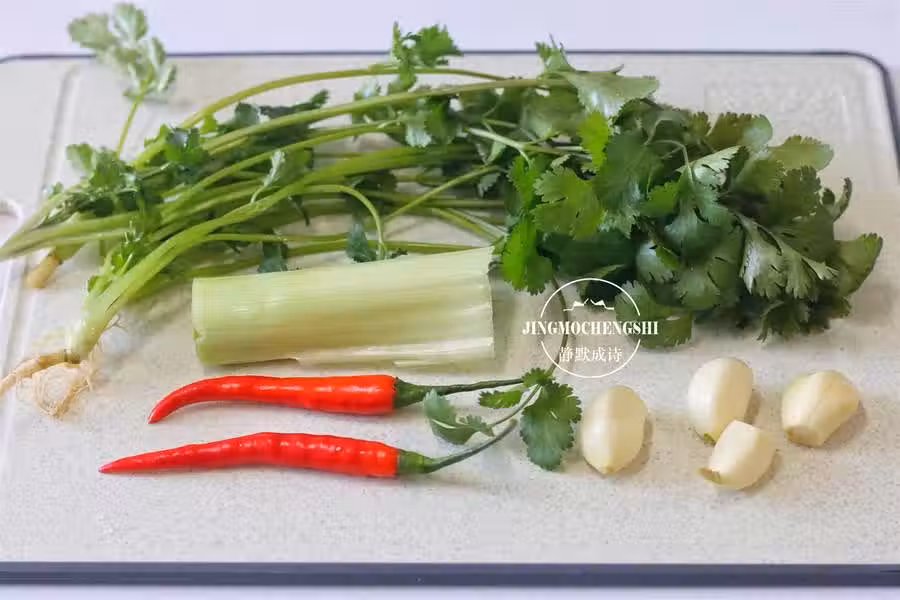 1、主要食材大合影。大蔥也可以用香蔥代替,但它的味道沒有大蔥來得濃郁。不喜歡吃辣的朋友可以把小米椒用量降到最低,最好不要完全省略,它很提味兒。