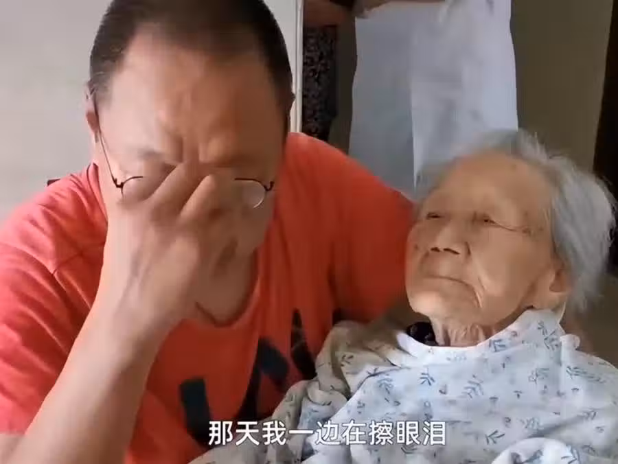 52歲兒子全程「抱著101歲媽媽」去看病!候診時「聽媽媽一句話」他當場淚崩:「這是兒子的本分」