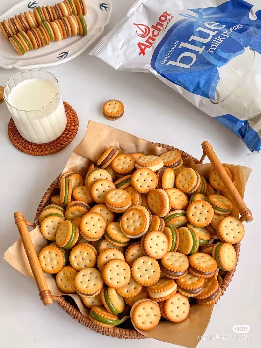 棉花糖150g,黃油60g,奶粉42g,抹茶粉4g,小奇福餅乾約250g